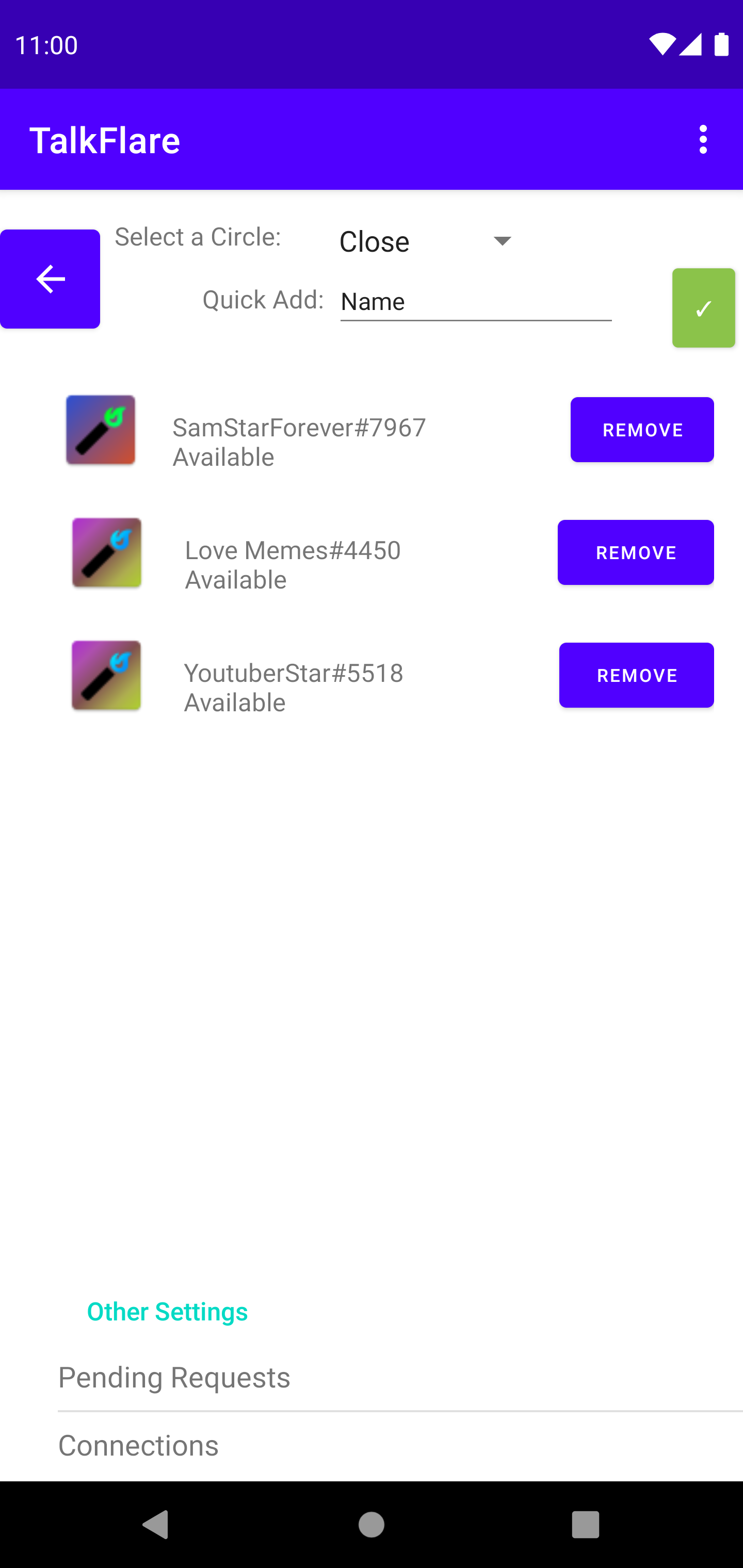 TalkFlare, at it's core, is just a button. You press the button, and it sends a message to a group of people at your choosing, telling them that you want to talk to someone. What happens after that, is out of the scope of TalkFlare. All TalkFlare does, is get the ball rolling, so that you can talk to someone. It's not designed to be a messaging service, it's not designed to be popular. It's just designed to be something of an SOS button for people who need to talk to others, but can't find it in themselves to start the conversation. That niche, is what TalkFlare is being made for.